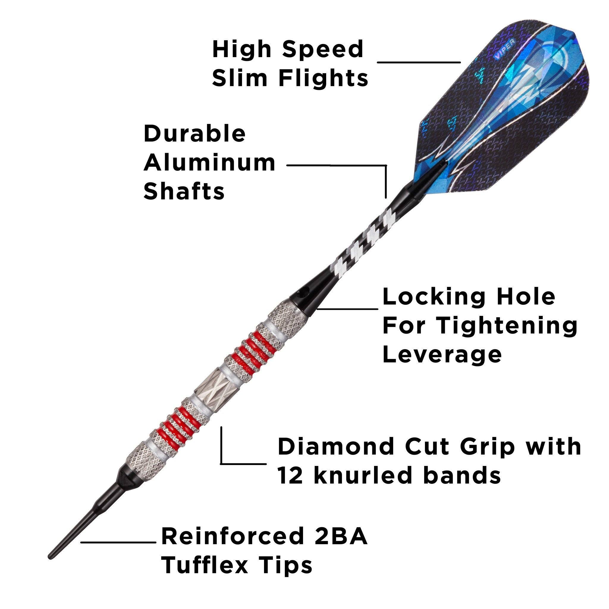 [OPEN BOX] Viper Astro Darts 80% Tungsten Soft Tip Darts Red Rings 18 Grams