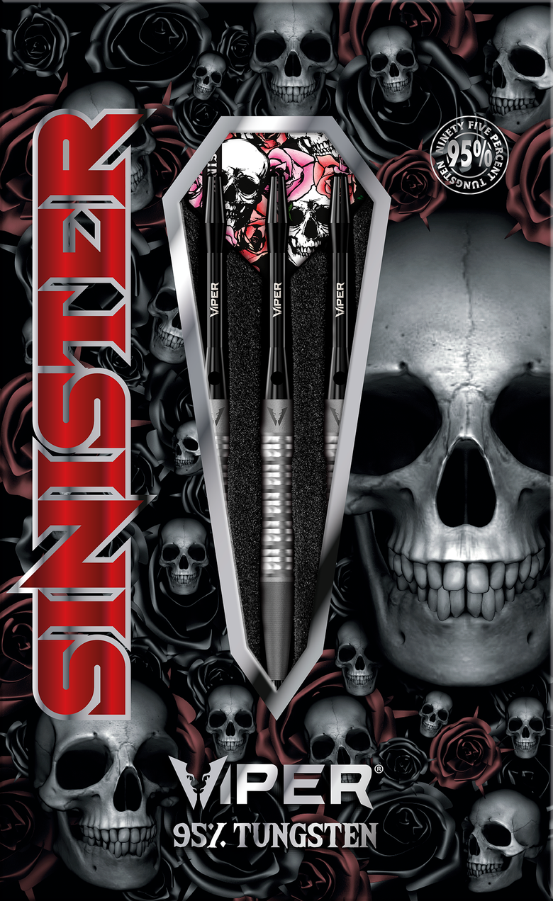 Unleash precision and elevate your performance with Viper Sinister Steel Tip Darts, crafted for serious players and designed for use with sisal dartboards. These premium darts feature 95% tungsten barrels, delivering a slim yet durable profile that allows for tighter groupings and improved accuracy. The barrels boast a unique sandblasted finish at the front and rear, adding a sleek texture and a professional aesthetic. With multiple grip styles to choose from, these darts are designed to provide superior control and consistency, ensuring every player finds their perfect throw. Equipped with lightweight aluminum shafts featuring locking holes, the Viper Sinister darts ensure maximum stability and eliminate the need for constant retightening. Complete with Viper-branded flights, this set is built for performance, reliability, and style—making it the ideal choice for competitive and recreational players alike.