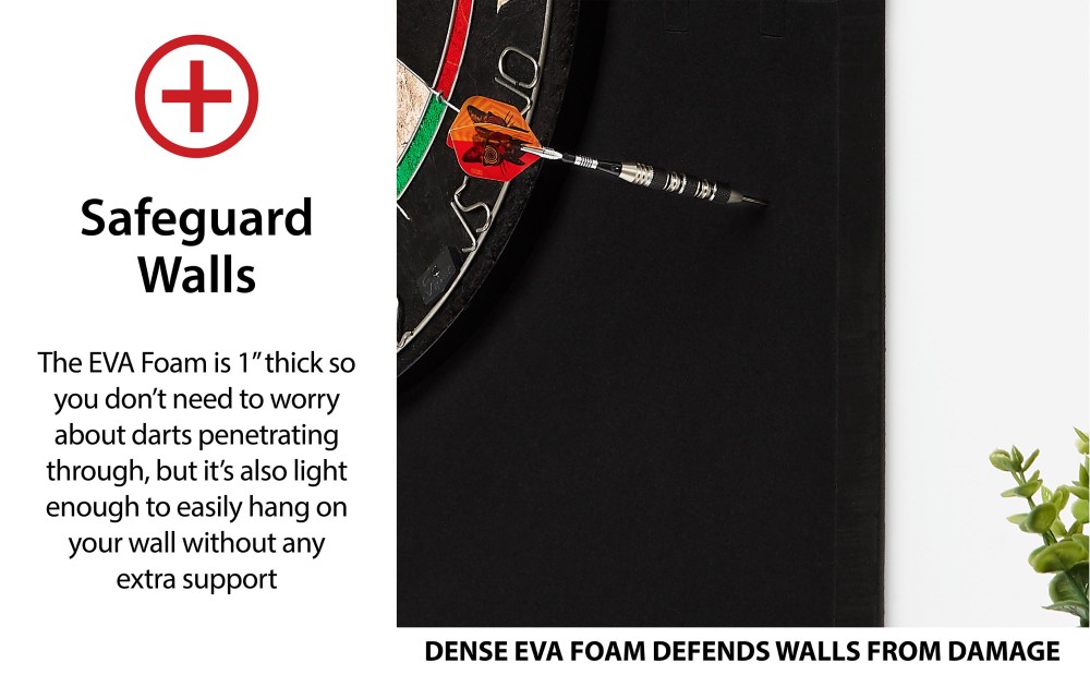 - Safeguard Your Wall - Durable 1” thick EVA foam prevents your darts from damaging your wall with 8.2 square feet of coverage